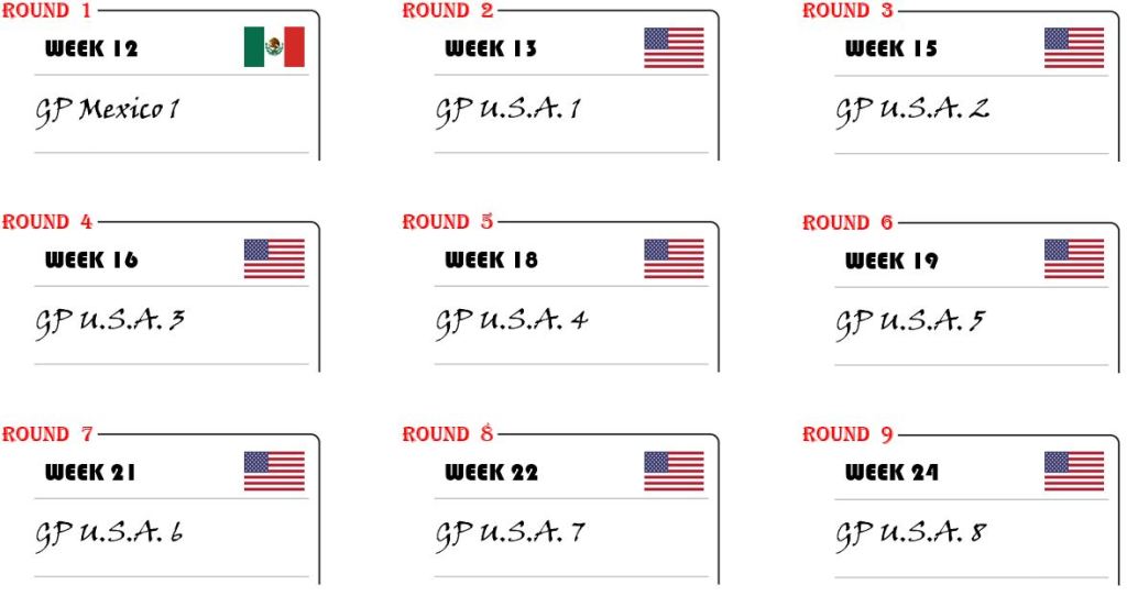 The week number is representing the weekend of the year when the race will be disputed.