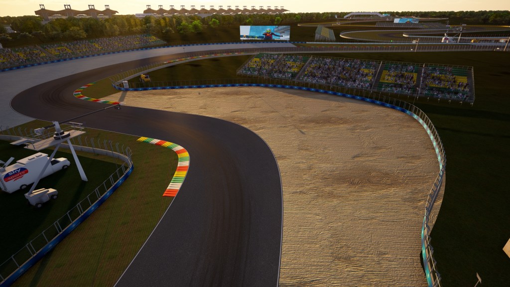 Lap times, though, will be made in the rest of the circuit: 18 corners of all combinations, from tight banked hairpins to fast bends, including double-apex turns and long sweeping curves.